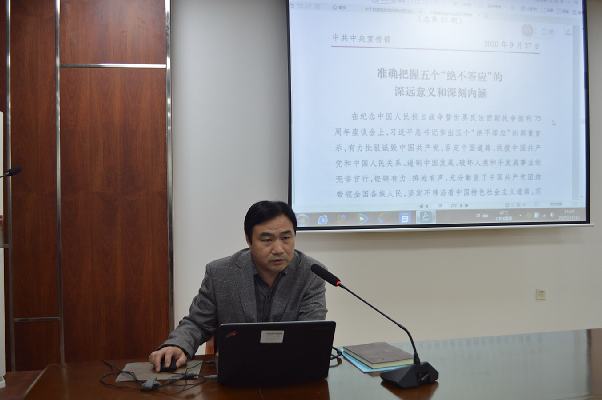 11月17日下午,学院在会议室组织全体教职工进行集中政治理论学习,直属党支部书记兼院长田启发主持学习活动。